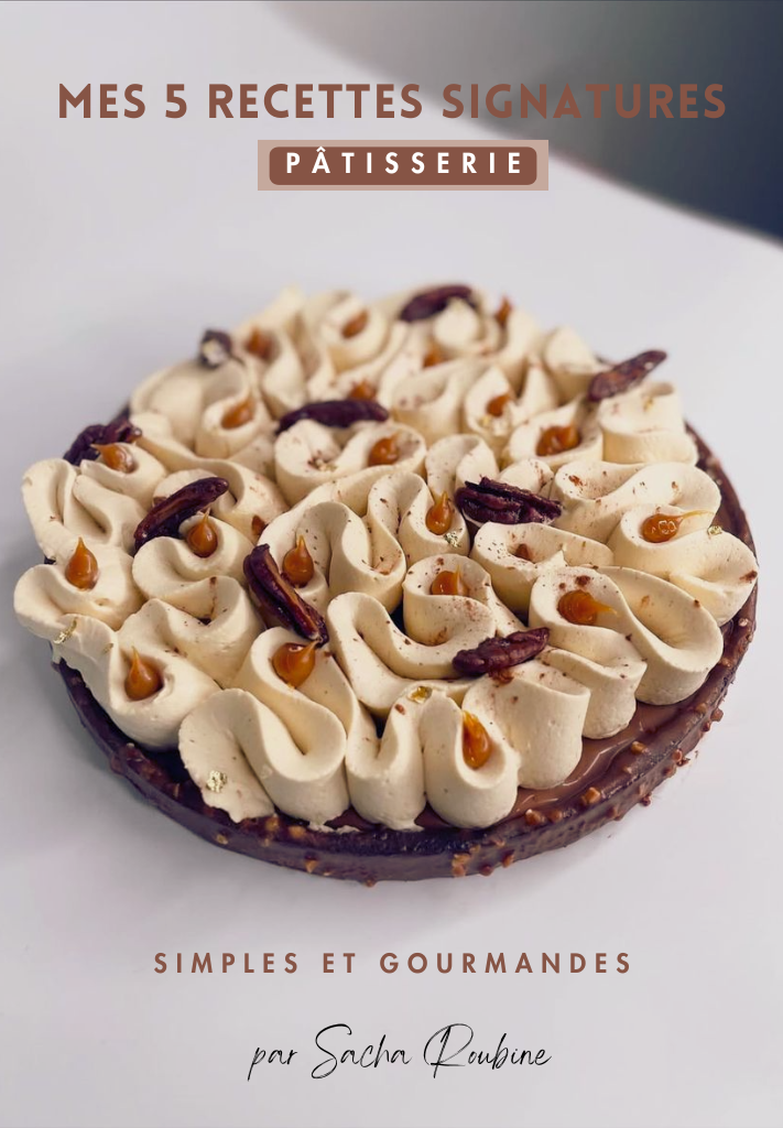 Explorez l’univers créatif de Sacha Roubine à travers un e-book exclusif dédié à ses 5 recettes signatures. Chaque création y est dévoilée avec précision : techniques essentielles, secrets de texture, choix des ingrédients et inspirations qui donnent vie à ses pâtisseries d’exception.