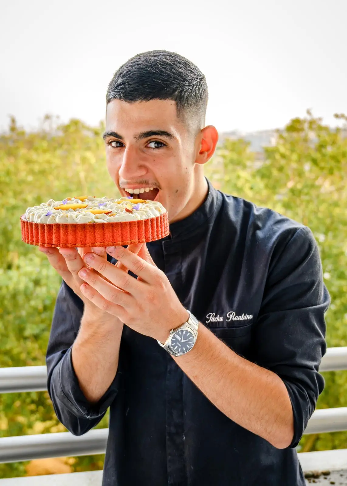 Son élégance pâtissière trouve racine dans une tradition familiale qu’il a longtemps ignorée. Un héritage discret, transmis par un arrière-grand-père pâtissier dont il n’avait jamais entendu parler — comme un don qui aurait sauté une génération pour se réveiller en lui. Là où certains ont suivi un chemin tracé, Sacha a dû tracer le sien : entre doutes, essais et échecs transformés en tremplins.
